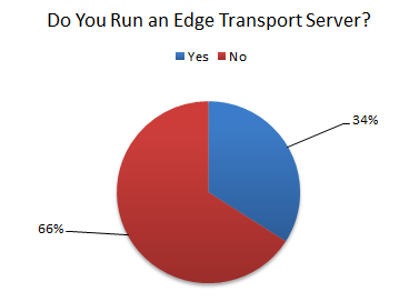 Although customers I work with to this day run Edge Transport servers, I’ve certainly worked with plenty that do not. When I surveyed Exchange Server Pro readers last year on their usage of the Edge role these were the results: