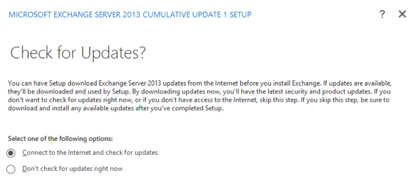 Note: Exchange 2013 cumulative updates stop the “Microsoft Exchange FrontEnd Transport” and “Microsoft Exchange Transport” services during the pre-requisites check. If you do not proceed with the installation you will need to manually restart the Microsoft Exchange Transport service.